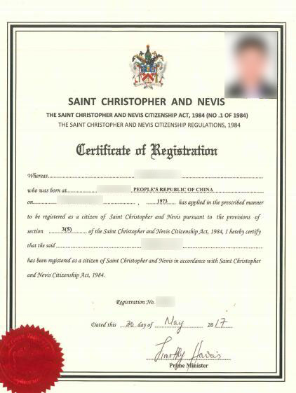 L先生成功入籍圣基茨·尼維斯