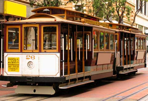 1869年,在看到馬在濕鵝卵石地上,沿著舊金山陡峭的杰克遜大街,艱難地拉著馬車前進(jìn)的時(shí)候,發(fā)明家安德魯·史密斯·哈樂迪(Andrew Smith Hallidie)靈光一閃,想到了一個(gè)蒸汽動力、纜索驅(qū)動的鐵軌系統(tǒng)。四年后,舊金山的第一輛纜車開始在馬路上行駛。游客可以在免費(fèi)開放的纜車博物館查看第一輛輛車,看看地下滑輪系統(tǒng)是如何工作的?;蛘咭部梢蕴弦惠v人工纜車,朝著當(dāng)年的馬前行的方向,行駛在杰克遜大街上。需要有兩個(gè)人制動剎車,尤其是在陡峭的大街上。黃銅鐘鐘聲響起之后,公共交通纜車上的二重奏總是為旅程增添不少趣味。