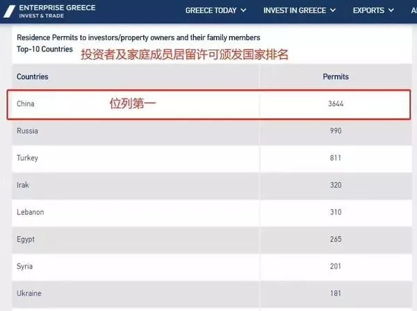 在這其中,中國(guó)的獲希臘居留卡人數(shù)居榜首的位置: