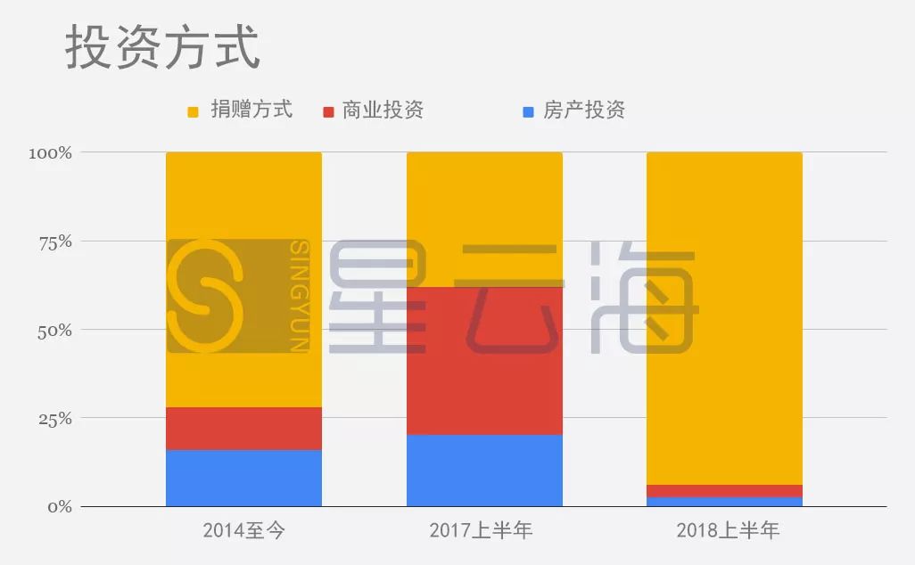 2018年上半年278名申請(qǐng)人中有261名選擇捐贈(zèng)途徑;只有7名申請(qǐng)人選擇房產(chǎn)投資、10名申請(qǐng)人選擇商業(yè)投資。相比之下,在2017年上半年,只有38%的申請(qǐng)者選擇捐贈(zèng)方式??偟膩砜?,自2014年以來至今,72%的申請(qǐng)都選擇了捐贈(zèng)方式。
