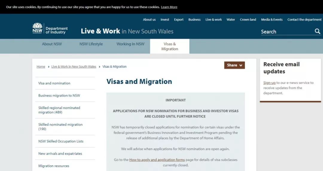 2018年12月18日下午,澳洲聯(lián)邦政府宣布,暫停新南威爾士州(澳大利亞最大州,首府悉尼)所有商業(yè)及投資移民申請:包括188A創(chuàng)業(yè)投資類,188B投資類,188C重大投資者類,以及132天才企業(yè)家類移民簽證州擔保申請。