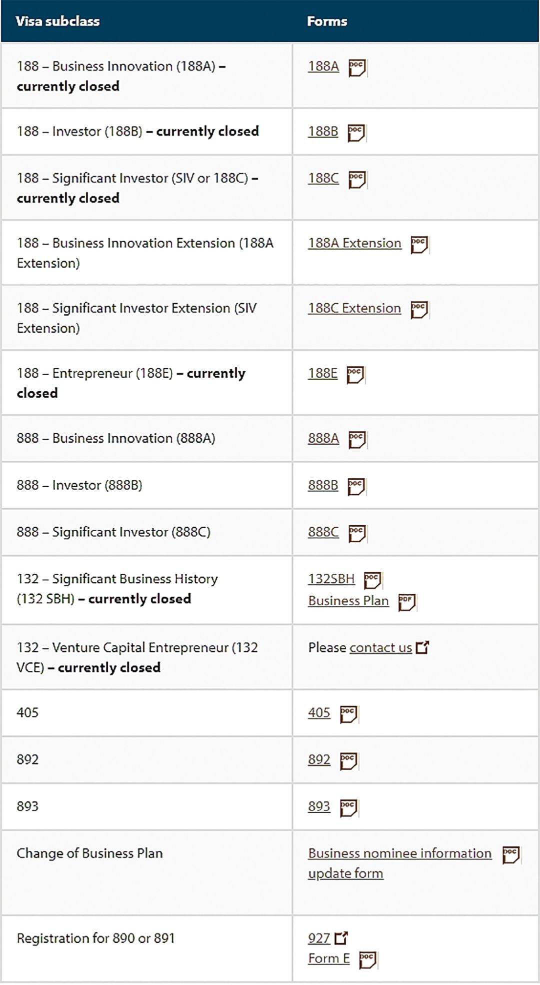 188A類 –商業(yè)創(chuàng)新類移民、188B類 –投資者類移民、188C類 –顯赫投資者移民、188E類 –企業(yè)家移民、及132 類別。