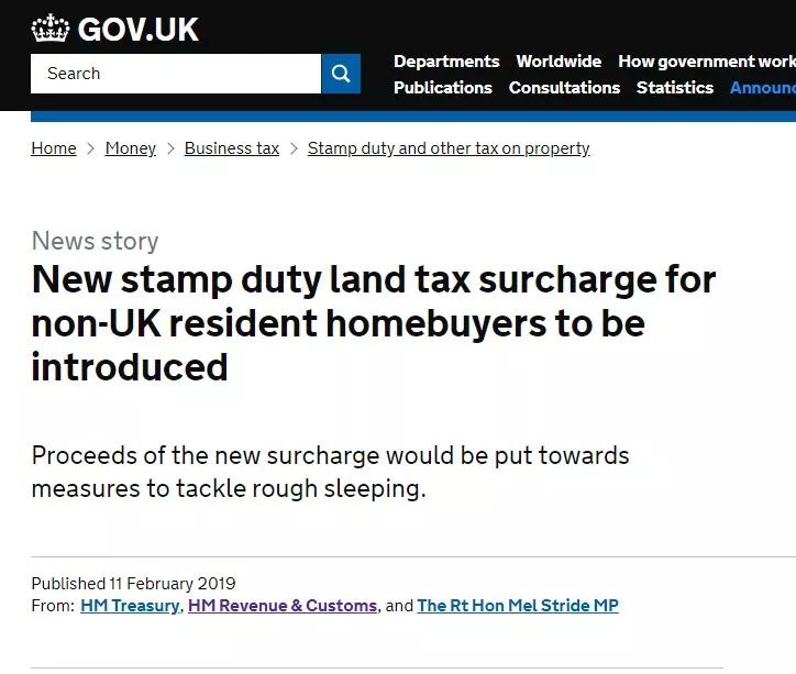 2019年2月11日晚間,英國(guó)稅務(wù)局HMRC在其官網(wǎng)公布了一份征稅細(xì)則,正式就“海外買家稅”開啟公眾咨詢。海外投資者在英國(guó)買房將面臨更高的印花稅。