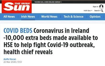 愛爾蘭衛(wèi)生部負(fù)責(zé)人宣布將增加10,000張床位以幫助抵抗疫情,并同時(shí)在體育館和大學(xué)建設(shè)大型醫(yī)院,盡快滿足普通病患醫(yī)療需求。